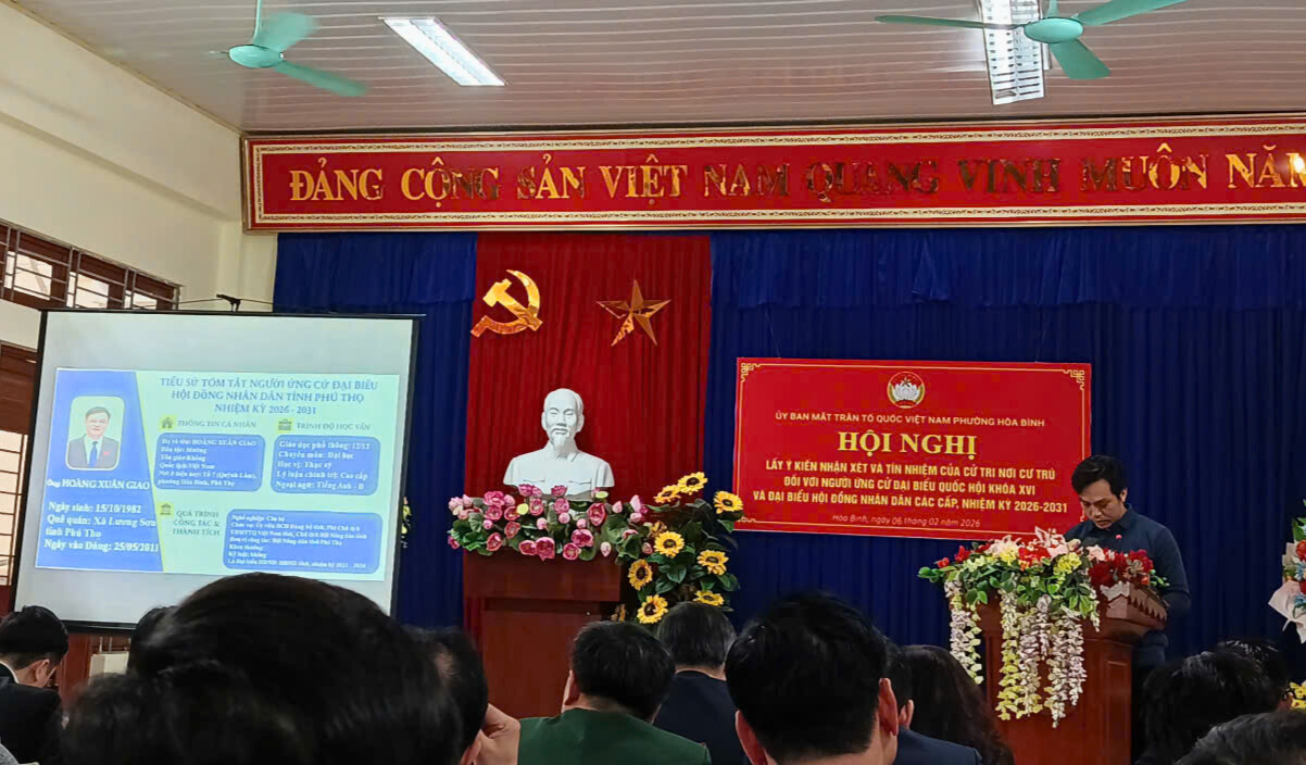 Ngày 06/02/2026, tại Nhà văn hóa tổ dân phố số 6,7 phường Hòa Bình, Uỷ ban Mặt trận Tổ quốc Việt Nam phường Hòa Bình tổ chức Hội nghị lấy ý kiến và tín nhiệm của cử tri nơi cư trú đối với người ứng cử đại biểu Quốc hội khóa XVI và đại biểu Hội đồng nhân dân các cấp, nhiệm kỳ 2026 - 2031.