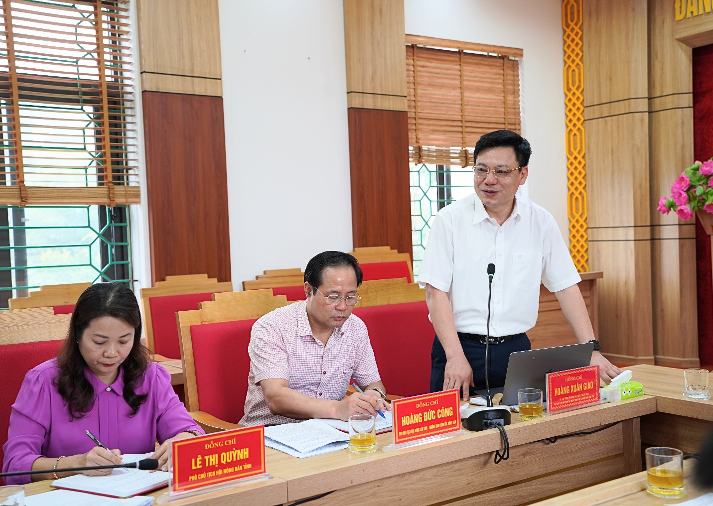 Đồng chí Hoàng Xuân Giao – TUV, Phó Chủ tịch Uỷ ban MTTQ VN tỉnh, Chủ tịch Hội Nông dân tỉnh phát biểu tại Hội nghị
