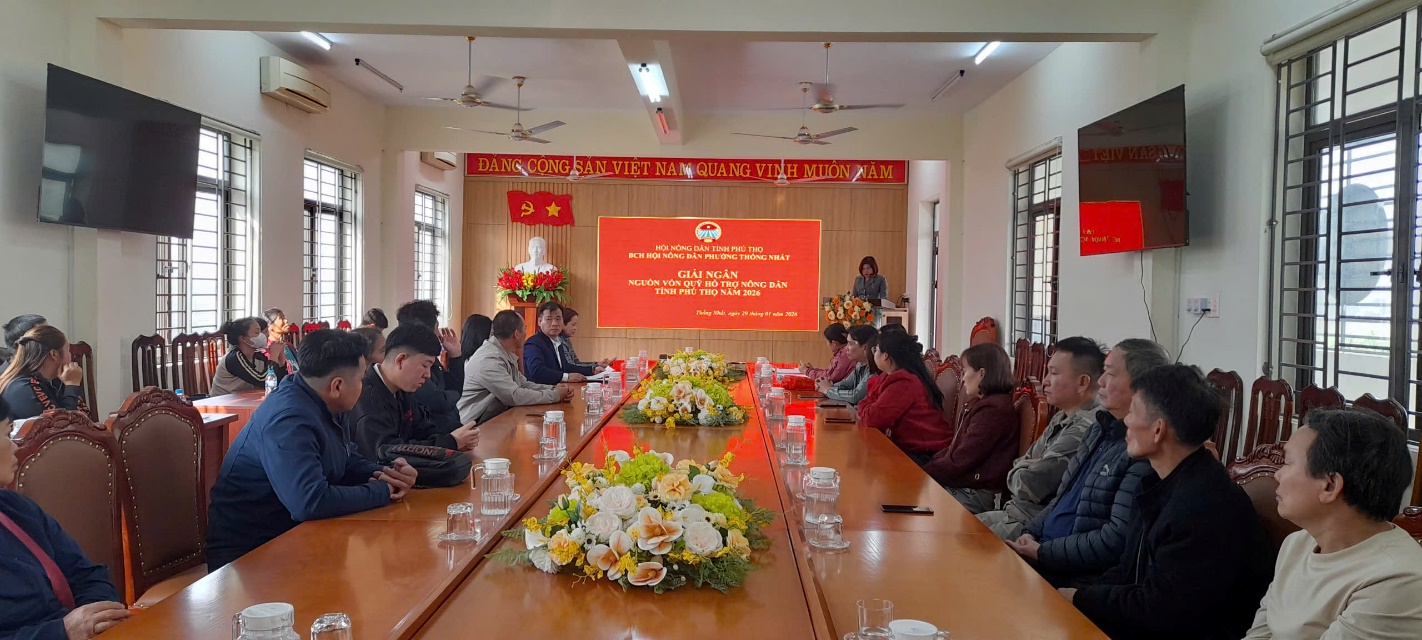 Thực hiện Quyết định số 03-QĐ/QHT ngày 27/01/2026 của Quỹ hỗ trợ Nông dân tỉnh Phú Thọ về việc phê duyệt dự án vay vốn Quỹ Hỗ trợ nông dân tỉnh, chiều ngày 29/01/2026, Hội Nông dân phường Thống Nhất tổ chức giải ngân vốn Quỹ Hỗ trợ nông dân cho hội viên nông dân trên địa bàn phường.