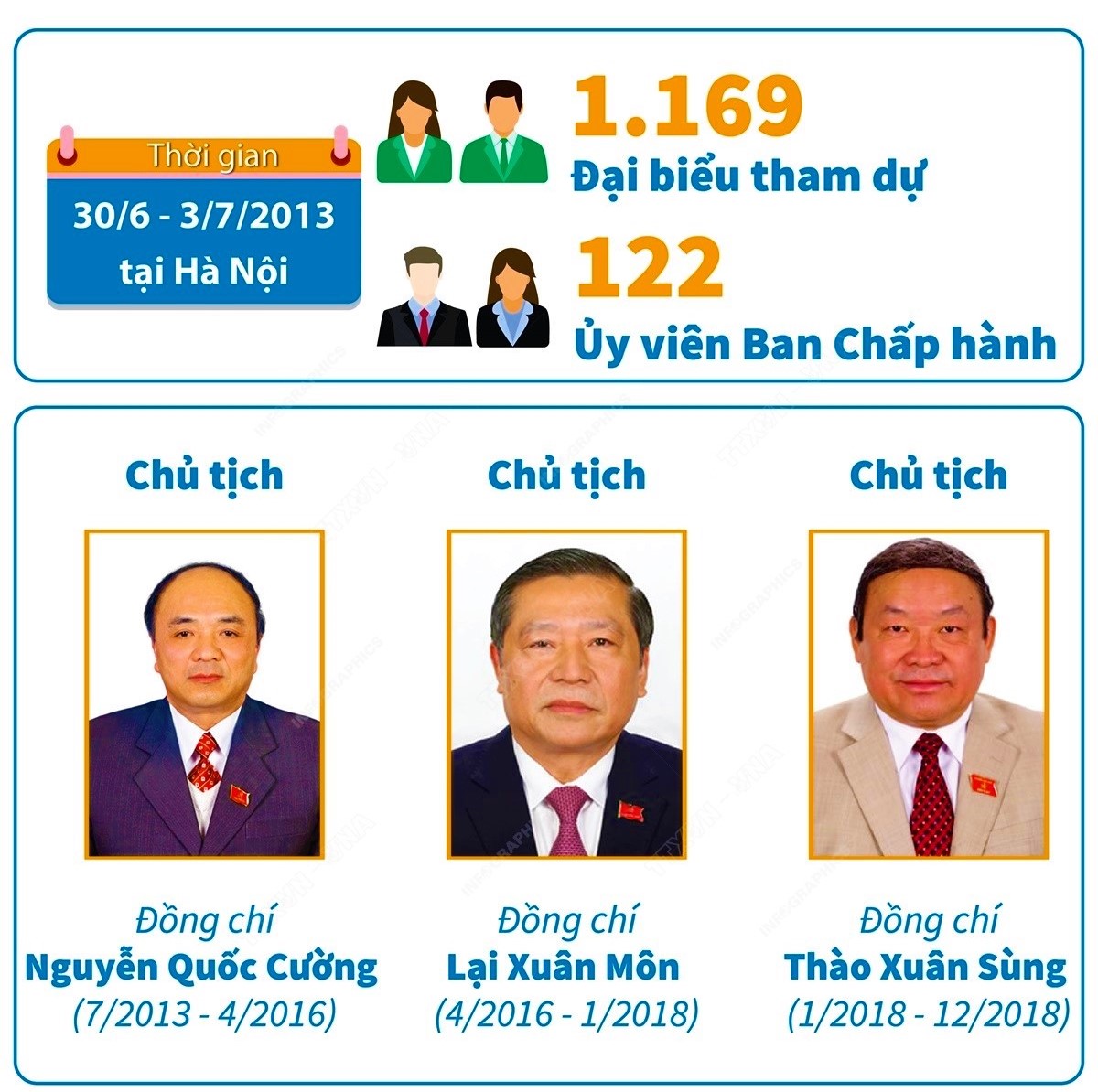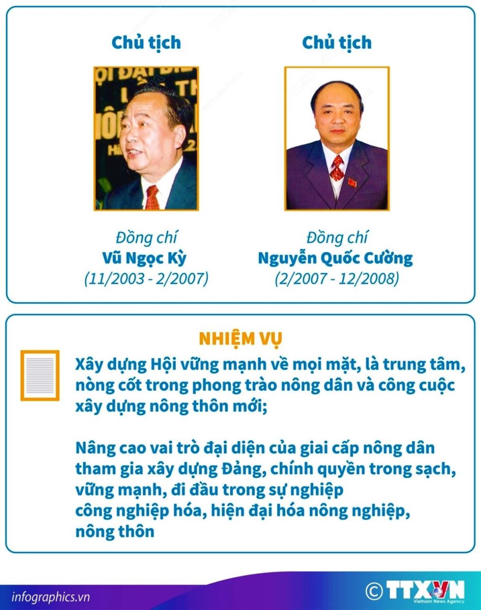 6. Đại hội đại biểu toàn quốc lần thứ VI Hội Nông dân Việt Nam (2013-2018) được tổ chức từ ngày 30/6 - 3/7/2013 tại Hà Nội. Dự Đại hội có 1.169 đại biểu đại diện cho hơn 9,9 triệu cán bộ, hội viên nông dân. Đại hội đã bầu 122 ủy viên Ban Chấp hành.