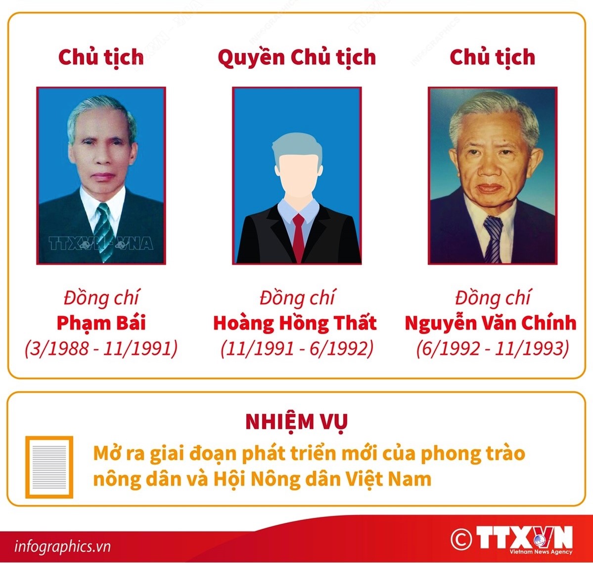 1. Đại hội đại biểu toàn quốc lần thứ nhất Hội Nông dân Việt Nam (1988-1993) được tổ chức ngày 28 và 29/3/1988 tại Hội trường Ba Đình, Hà Nội. Dự Đại hội có 613 đại biểu đại diện cho trên 11 triệu cán bộ, hội viên nông dân. Đại hội đã bầu Ban Chấp hành gồm 95 đồng chí. Đồng chí Phạm Bái - Ủy viên Trung ương Đảng được bầu giữ chức Chủ tịch Ban Chấp hành Trung ương Hội Nông dân Việt Nam.