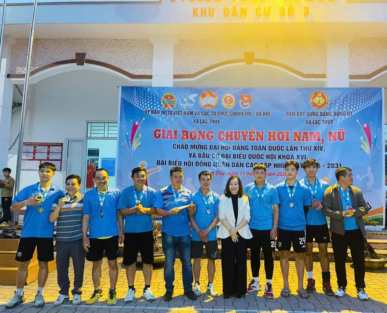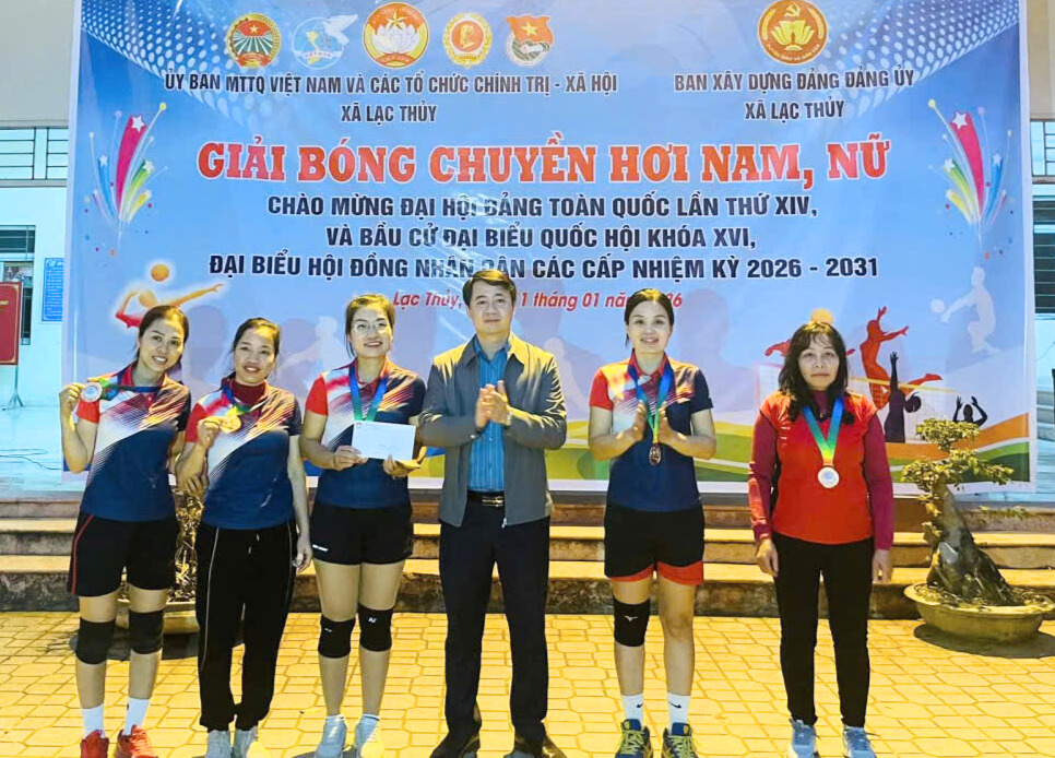Trong không khí thi đua sôi nổi đó, ngày 11/01/2026, Ủy ban Mặt trận Tổ quốc Việt Nam và các tổ chức chính trị – xã hội xã Lạc Thủy đã phối hợp với Ban Xây dựng Đảng tổ chức Giải bóng chuyền hơi nam, nữ. Giải đấu diễn ra trong tinh thần đoàn kết, phấn khởi, thu hút sự tham gia đông đảo của cán bộ, đoàn viên, hội viên, qua đó góp phần nâng cao đời sống tinh thần, rèn luyện sức khỏe và thúc đẩy phong trào thể dục thể thao quần chúng trên địa bàn xã.