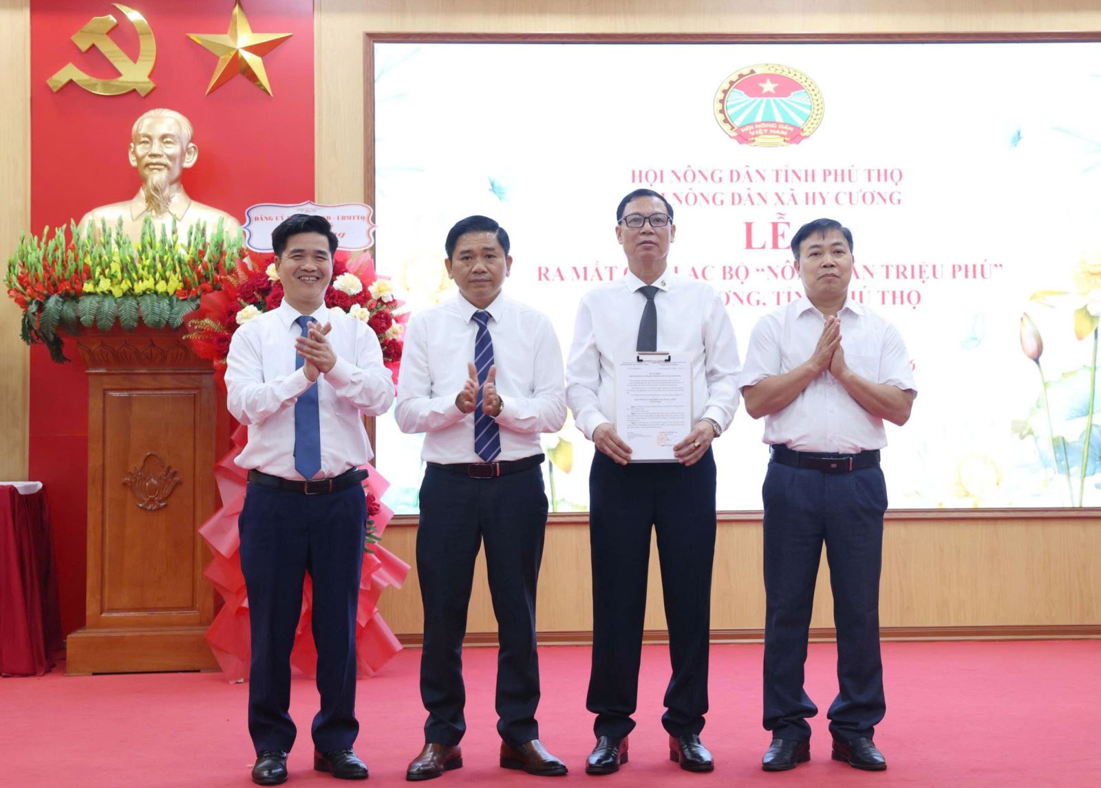 Được sự đồng ý của Ban Thường vụ Hội Nông dân tỉnh Phú Thọ và sự nhất trí của Đảng ủy, Hội đồng nhân dân, Ủy ban nhân dân, Ủy ban Mặt trận Tổ quốc xã Hy Cương, Hội Nông dân xã Hy Cương đã tổ chức lễ ra mắt Câu lạc bộ “Nông dân triệu phú”.