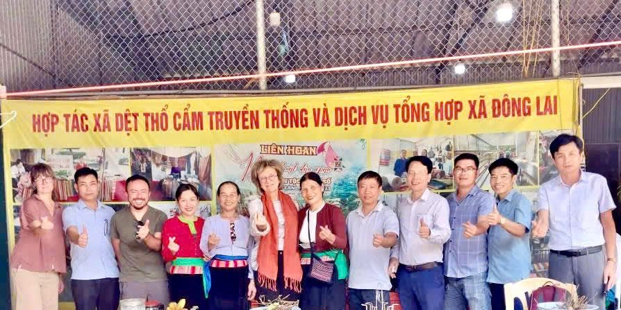 Đoàn đã khảo sát thực tế tại Hợp tác xã dệt thổ cẩm truyền thống xã Đông Lai (huyện Tân Lạc cũ). Đây là một trong 14 tổ hợp tác, hợp tác xã tiêu biểu được Hội Nông dân tỉnh hỗ trợ tham gia Chương trình FFF. Thông qua việc tổ chức thực hiện các hoạt động FFF, các tổ hợp tác, HTX đã nâng cao năng lực quản trị, xây dựng và quảng bá thương hiệu cho những sản phẩm đặc trưng: trà giảo cổ lam, trà tía tô, bưởi đỏ, gà hữu cơ, dược liệu dưới tán rừng, thổ cẩm truyền thống….
