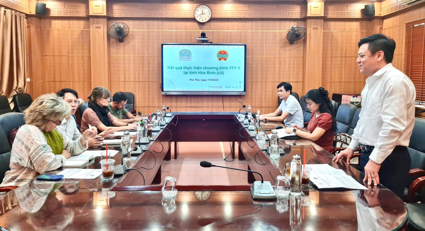 Ngày 17/9/2025 tổ chức Nông lương Liên Hợp Quốc (FAO) đến thăm và làm việc với Hội Nông dân tỉnh Phú Thọ nhằm đánh giá tác động của Chương trình rừng và trang trại (FFF) và nhu cầu nâng cao năng lực của các tổ hợp tác, hợp tác xã sản xuất rừng và trang trại về sản xuất theo chuỗi, thích ứng với biến đổi khí hậu, sinh kế bền vững, đặc biệt tập trung vào nông dân trẻ, phụ nữ và đồng bào dân tộc thiểu số.